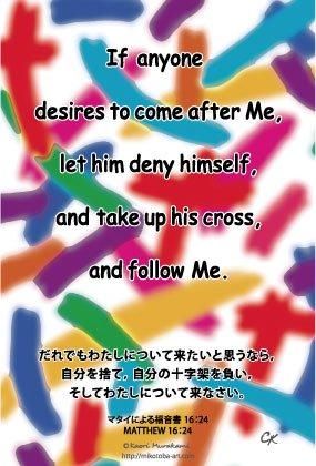 「だれでもわたしについて来たいと思うなら、自分を捨て、自分の十字架を負い、そしてわたしについて来なさい。」