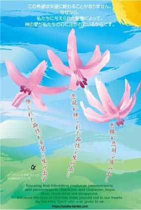 「患難が忍耐を生み出し、忍耐が練られた品性を生み出し、練られた品性が希望を生み出す。この希望は失望に終わることがありません。なぜなら、私たちに与えられた聖霊によって、神の愛が私たちの心に注がれているからです。」